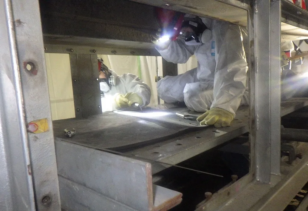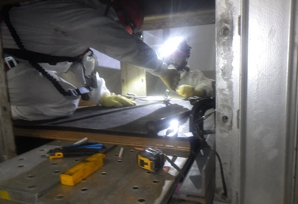廃棄物処理施設の焼却灰を運搬するコンベヤベルトのエンドレス工事を実施しました。
