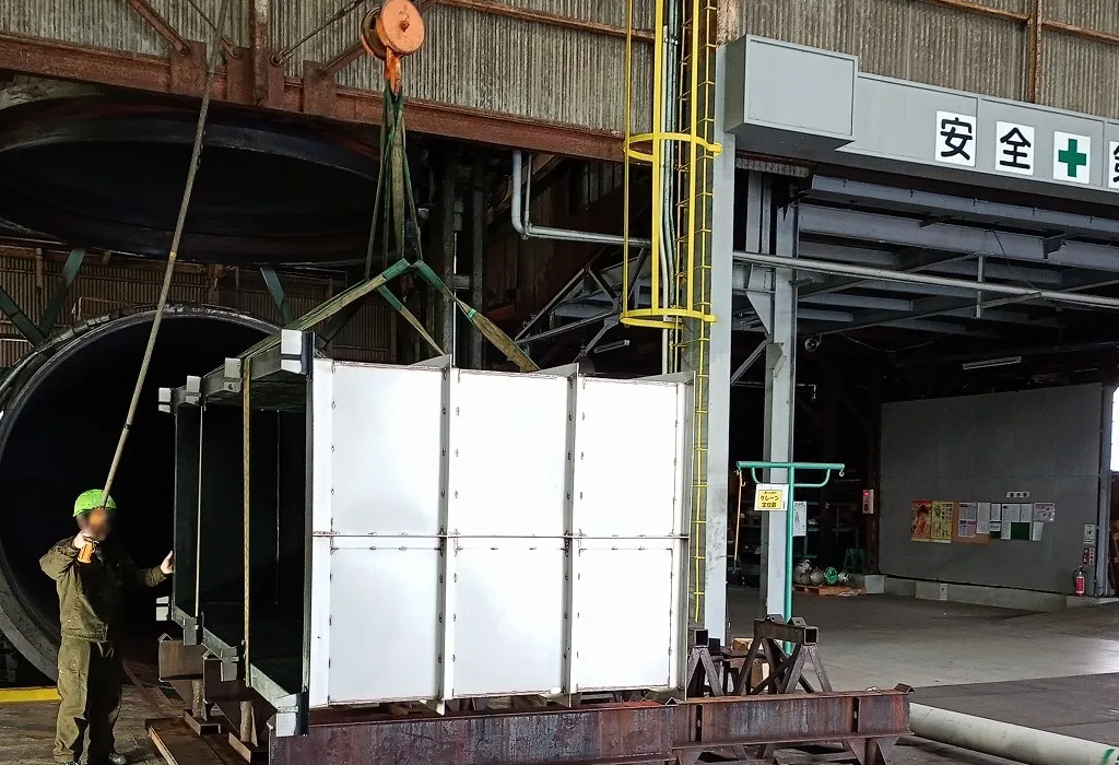鋼材の表面処理等に使用される酸洗槽のゴムライニングを行いました。